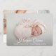 Elegantly sweet birth announcements feature your favourite newborn photo, baby's name and birth stats in white chic lettering. A photo collage and parent's names on the back. *TIP: You may want to size the 2 square photos on the back BEFORE uploading them for easy placement. **The Live Design Service can help you with your design layout if needed.
