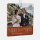 Elegant Newlywed Photo Married and Merry Ceramic Ornament