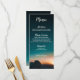 Elegant wedding menu template card. Background is a beautiful photograph of a dark turquoise blue night sky with a galaxy of stars above and a sunrise over silhouetted mountains below. The text is completely customisable and is in a stylish pair of script and sans serif fonts. If you are having trouble revising the text areas to suit your needs, message me and I'd be happy to help.