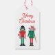 This nutcracker Christmas gift tag features a cute illustration of a nutcracker and mouse king over a white background with the saying: Merry Christmas in a red script type. To and From on the backside. An adorable gift tag — perfect for the gift giving season!