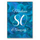 Elegant Ocean Blue 80 and Amazing Birthday Party Table Number