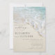Perfect for destination weddings, this elegant summer beach wedding invitation with classy beautiful handwriting script features a close-up photo of a beach shoreline with an ocean wave and seafoam.