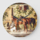 Elegant painting of horses in a stable yard makes a beautiful addition to stable, tack room, or equestrian home.