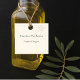 This elegant hang tag blends Mediterranean charm with professional clarity. The hand-drawn olive branch, golden ornaments, and classic typography make it ideal for sophisticated brand presentations.