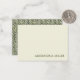 Make a stylish statement with this Elegant Flat Note Card featuring a light ivory front and an on-trend olive green modern sans serif font. The name, right justified in the lower right-hand corner, adds a touch of sophistication and personalisation to each card. Turn over the note card to reveal a captivating olive green and ivory herringbone pattern print on the back. This timeless pattern adds a subtle yet refined touch, making it a perfect choice for any occasion. Whether you're sending a thank you note, writing a personal message, or extending your warm wishes, this flat note card will leave a lasting impression.