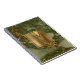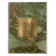 An elegant notebook featuring a background image of olive green marble with gold veins. Personalize it with your monogram initial in decorative font and your name in copperplate lettering in olive green on a brushed gold foil square.