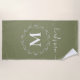 Elegant Olive Green Personalised Wreath Monogram Beach Towel