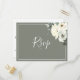 This simple elegantolive green RSVP postcard features a watercolor ivory floral design with elegant script font.