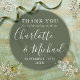 Featuring signature style names, this elegant olive green sticker can be personalised with your special thank you information in chic white lettering. Designed by Thisisnotme©