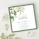 Modern, elegant square bridal shower invitation featuring lush green botanical leaves and eucalyptus, and bordered in olive green. Personalise your bridal shower details in soft off-black, accented with beautiful modern hand lettered calligraphy. The back of the card features the watercolor botanicals over green texture. Copyright Elegant Invites, all rights reserved.