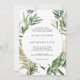This elegant olive greenery wedding invitation is perfect for your modern summer boho wedding. It is designed with watercolor emerald green and sage-coloured leaves, touches of botanical gold, blush pink olive flowers, and simple black vintage typography. All these elements combine for a beautiful bohemian feel.