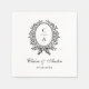 Elegant Olive Leaf Wreath Vintage Black & White Wedding Napkin. Botanical Wedding Monogram Crest. Personalised Crest Napkins. Vintage Gold Ornament Wedding Napkins