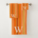 elegant orang and brown yellow stripes pattern monogram bath towel set. custom colorful stripes pattern bath towel set.