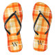 elegant orang yellow tartan plaid monogram flip flops, custom tartan plaid monogram flip flops.