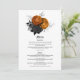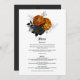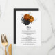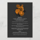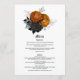 This beautifully crafted menu design features a striking combination of orange and black, perfect for a gothic wedding with a shabby-chic flair. The ornate detailing and bold colour palette set the tone for a darkly romantic and sophisticated celebration. Ideal for couples seeking to create an unforgettable dining experience that complements their unique wedding theme.