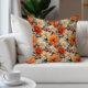 Decorator pillow with an elegant orange, cream, and teal floral pattern