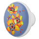 Elegant Orange Flowers - Blue Grey Ceramic Knob