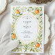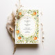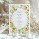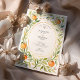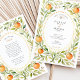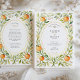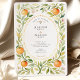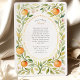 Celebrate your love in a sun-drenched paradise with this enchanting wedding invitation. This beautiful design features a hand-painted watercolor border of lush, ripe oranges and delicate orange blossoms, nestled among graceful, intertwining green leaves. The vibrant and cheerful artwork creates a beautiful oval frame for your wedding details. At the heart of the design, a charming dashed border in warm citrus hues of yellow and orange elegantly encloses your text. Perfect for a summer wedding, a romantic destination celebration, or any couple looking for a design that is fresh, vibrant, and timelessly elegant.