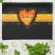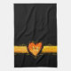 Elegant Orange Heart Valentine day Black Monogram Tea Towel