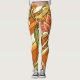 Elegant Orange White Flowers And Swirl Leggings