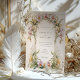 This luxurious wedding invitation set features an elegant Art Nouveau design adorned with intricate orchid motifs. The front of the invitation beautifully frames the wedding details with lush green foliage and delicate orchids in shades of pink, cream, and yellow, set against a classic white background. The back of the invitation showcases a symmetrical arrangement of matching orchids, creating a cohesive and sophisticated look. Perfect for a garden or vintage-themed wedding, this invitation set combines timeless elegance with artistic beauty, making it an unforgettable piece of wedding stationery.