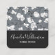 These trendy and modern floral black and white square business cards feature a beautiful orchids pattern over a classy grey background. Easily customisable by adding your name (in a modern calligraphy white font) and profession (all caps white font) on the dark grey band on the lower part. The back of the card is grey and is personalizable with all your contact information in white lettering (address, phone number, website, email address, social media details).