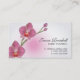 An elegant, modern, floral business card with beautiful pink orchid flowers over a grey background. Personalise this lovely design by adding your name, professional title, and business information. Perfect for a florist, massage therapist, event planner, salon & spa, or anyone who wants a modern, minimalist yet classic feminine design.