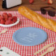 Simplistic paper plates with an elegant orchid flower on a simple powder blue background. Personalise this minimal feminine design by adding the name of the party girl.