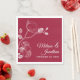 Elegant wedding paper napkins featuring a beautiful and delicate white orchids line drawing design on one side, over an elegant romantic crimson red background. Easily edit the template fields to add the bride and groom names in a classy white script, and your wedding date in a modern all-caps font.