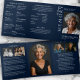 Modern navy blue and white funeral program, offering a gender-neutral and elegant design ideal for any memorial, celebration of life, or funeral service. This professionally designed printed tri-fold program features a stylish navy blue background paired with sophisticated white serif and script text, creating a respectful and refined aesthetic for honouring a loved one. The cover includes space for a large photo along with name and date placeholders, while the interior panels are thoughtfully arranged for an order of service, acknowledgements, obituary, and customisable poem or reading. With six customisable photos and clearly structured sections, this layout makes it easy to create a personalised tribute that reflects the life and memory of your loved one. Designed to suit all genders, faiths, and backgrounds, this versatile template is ideal for religious services, homegoing celebrations, and remembrance events. The elegant style, spacious formatting, and editable content fields allow you to create a meaningful keepsake that honours the life and legacy of your loved one with dignity.