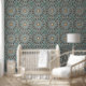 Elegant Oriental Persian Blue Arabesque Decoration Wallpaper