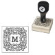 Elegant monogram rubber stamp featuring your monogram initials encircled by a ornate frame. The monogram rubber stamp is perfect to use for weddings, thank you cards, graduations, Christmas, and more! Choose from a variety of ink pad colours to complete the look for your special event.