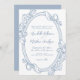 This invitation is perfect for couples seeking a classic yet whimsical vibe, ideal for elegant garden weddings, vintage-inspired celebrations, or formal events with a touch of charm. The soft dusty blue tones and intricate filigree details make this design both versatile and captivating.