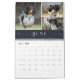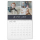 Elegant calendar you can personalise with your own photos, three per month. One large and vertical photo and two smaller horizontal photos. Each month is written in an elegant ornate serif font in white against navy blue. Perfect for family photos or photos of your pet. Great as gifts to grandparents and in-laws!