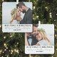 Celebrate the joy of newlywed life with this charming Christmas ornament, perfect for commemorating "Our First Christmas" together. The design features a clean white rectangle at the bottom of both the front and back, displaying "Our First Christmas," along with the couple's names and wedding date. Combining bold serif fonts with script handwriting typography, it exudes elegance and simplicity. The ornament also includes two customisable photo spaces with a transparent white wash for an ethereal look, making it a meaningful keepsake for newlyweds. If you prefer a brighter photo, you can easily remove the transparent white layers in the editing tool.