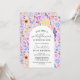 This vibrant floral girl's first birthday design features hand drawn wildflowers against a pink background. An elegant white arch sets the stage to present your party details. You can customise this for a girl's birthday of any age. See the whole matching party collection.