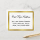 Let your friend and family know you've moved. This white and faux gold change of address postcard can be personalized with your desired text (shown: Our New Address). The text is black script. The faux gold border is not made of foil.