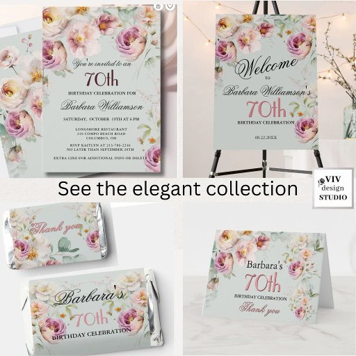 Elegant Floral Painted 70th Birthday InvitationsDesigned by Vivian Dye