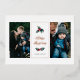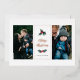 These stylish Christmas cards feature two photo templates. Design elements include modern typography reading, "Merry Christmas" in real foil (choose gold, rose gold, or silver), along with two holly berries and leaves arrangements. A foil rectangular frame outline adds a touch of class. The back of the card contains a holly berries pattern over a white background.