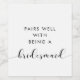 "Pairs well with being a bridesmaid" custom wine label! An original bridesmaid proposal, perfect for a bridesmaid box set. Easily custoizable with your favourite colours.