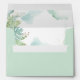 Elegant pale green envelope with exquisite watercolor stains inside in turquoise, aqua, dusty blue and soft green tones, as well as greenery details in both inside and outside. Greenery foliage in turquoise, aqua, blue, green tones. Gold details in leaves and dainty speckles. Part of our "Airy Blue and Green Watercolor" collection with variety of coordinating products.