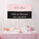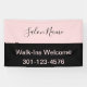 A banner lets everyone know your beauty salon is open and welcomes walk-ins. The pale pink text at the bottom says 'Walk-Ins Welcome'. The pink text is on a black stripe. A pink stripe at the top has an elegant black script for the beauty salon's name. Pink display text is also available for the salon's phone number.