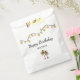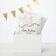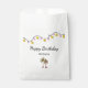 Tropical Beach Birthday party favour bag, with an elegant palm trees string lights design on a white background. With customisable typography lettering, you add your own information. A great way to say thank you to your party guests.