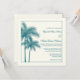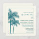 A modern and elegant tropical themed wedding invitation. Featuring a pair of palm trees. Shown in teal blue and ecru/cream. Perfect for a destination wedding. Easily personalise for your event.