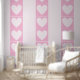 The design features stripes of medium sized hearts in very soft pastel pink alternating with very light pink panels.