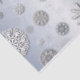 Elegant tissue paper design featuring stylised snowflakes on silver background.