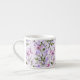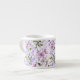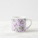 An espresso cup adorned with delicate pink, purple, and white blossoms on a soft lavender background, adding elegant, romantic charm to coffee rituals and making a refined, gift‑ready choice for lovers of floral art and stylish kitchen décor.