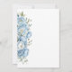 The left-hand edge of this elegant wedding invitation features a pastel blue watercolor floral bouquet. The customisable text combines blue handwriting script with charcoal grey copperplate and italic fonts on a white background. The floral design is repeated on the reverse.