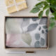 This tissue paper features a soft watercolor design of blush pink and peach peonies and roses. The delicate florals are accented with dusty sage and cool grey-blue leaves, making it a beautiful and elegant way to wrap any special gift.