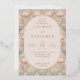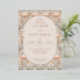 This elegant wedding invitation features a symmetrical layout with a central oval frame filled with soft peach color, surrounded by stylized floral motifs in shades of pale pink, cream, and muted green. The design employs a classic serif font for the text, creating a timeless appeal, while the Art Nouveau-inspired style adds a touch of sophistication with its flowing lines and organic forms. Perfect for couples seeking a refined and graceful aesthetic, this invitation sets the tone for a memorable celebration.